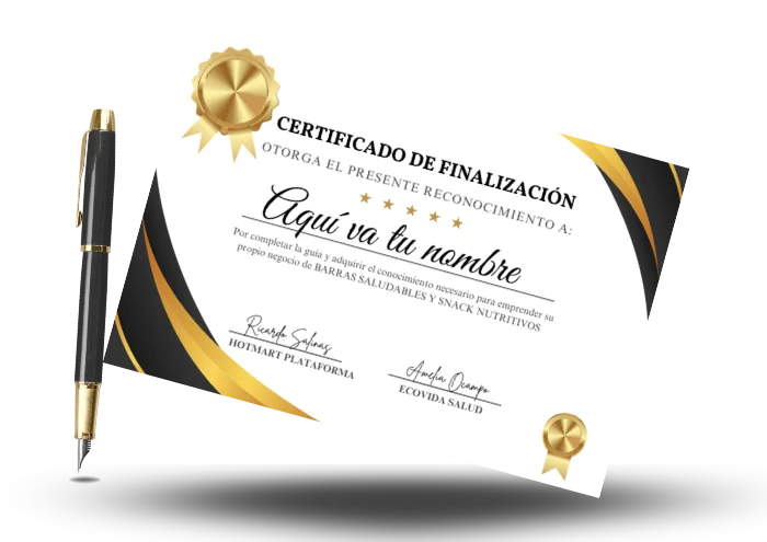 Al completar el Recetario Premium de Cócteles, recibirás un certificado digital personalizado con tu nombre, reconociendo tu dedicación y nuevas habilidades en mixología casera. Un logro que podrás compartir con orgullo como parte de tu desarrollo personal, creativo o profesional.